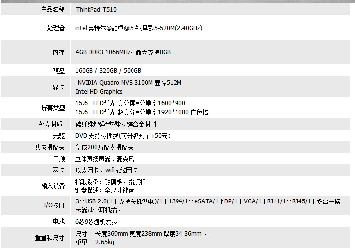 • 【95新】T510 原装i5-520M ∣ 内存4G ∣固态硬盘120G∣ DVD光驱 ∣  LED-15.6寸宽屏∣ HD集成显卡 ∣ wifi ∣  ∣ 摄像头 ∣ [ 最新到货,限量特价! ]